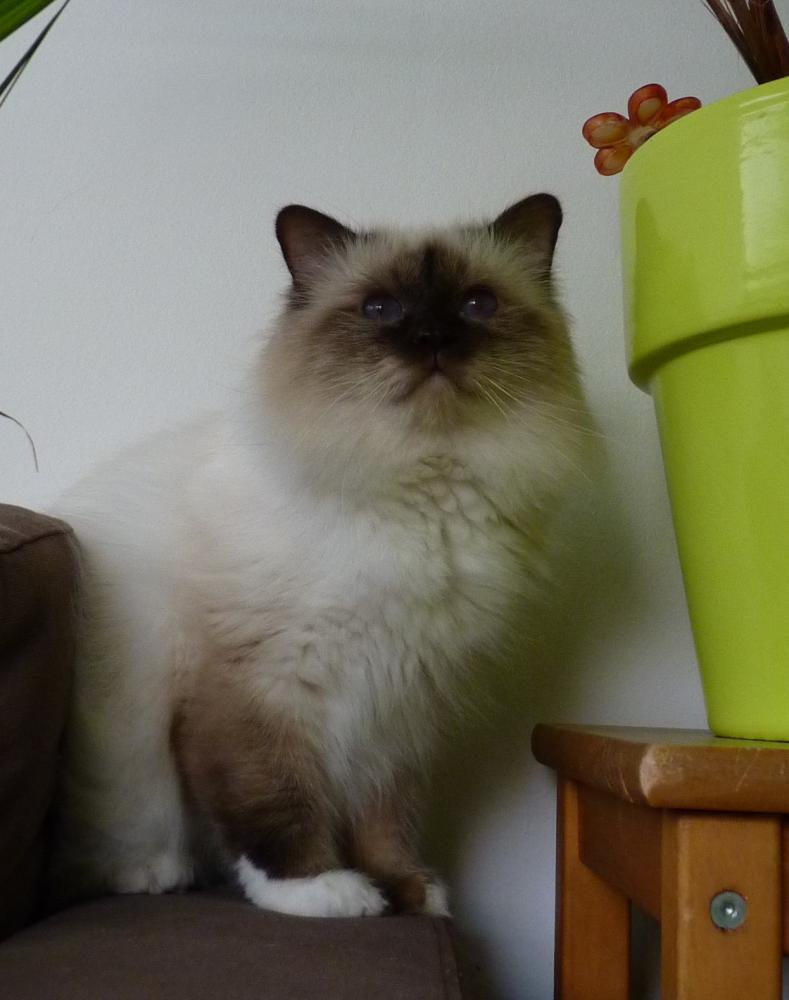 Et voici notre " gros lourdeau ", nom qui lui colle à la peau depuis tout petit. En effet, Monsieur pesait 135 g à la naissance ! Jamais nous n'avions eu un chaton aussi gros. Et à 9 mois et demi, il pesait déjà 5.3 kg. Bon, on voit bien que c'est la réplique de sa maman, notre regrettée CKANSAS. Ce gros minou plein de ronrons prend la suite ... à suivre.